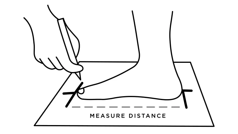 Have a friend mark the longest part of your foot (referred to as heel-to-toe length) on the paper with a pen or pencil, or measure yourself if necessary. Repeat with the other foot, as right and left sizes may be different.
