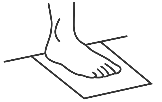 Find a hard flat surface, tape a piece of blank paper, flush against a wall. Place your foot on the paper, with your heel flush against the wall, stand up straight.