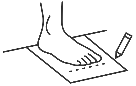 Have a friend mark the longest part of your foot (referred to as heel-to-toe length) on the paper with a pen or pencil, or measure yourself if necessary. Repeat with the other foot, as right and left sizes may be different.