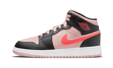 The Air Jordan 1 Mid Barely Volt features a grained black leather upper, contrasted by mottled Volt colored inserts at the toebox and connecting the quarter panel to the ankle collar. A second touch of color enhances the pair with the red Wings logo and Jumpman on the tongue. Finally, a white midsole completed with a green outsole finalizes the whole.