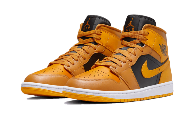 The Air Jordan 1 Mid Chutney Taxi features an all yellow leather upper. Some black details are applied on the panels, the tongue in the center and on the Wings logo. A white sole with a yellow outsole completes the trendy design by Peter Moore.