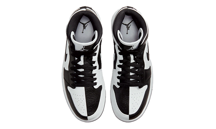 The Air Jordan 1 Mid SE Homage arbors a design in black and white grained leather. Cut in two, its design consists of a white base that matches the toebox, while the overlays and the Swoosh are black on the outside. À On the inside, the exact opposite is true. The tongue made of nylon and its Jumpman brandThey are also split in two and are no exception to the rule.