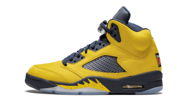The Air Jordan 5 DJ Khaled Crimson Bliss features asalmon pink leather base , tuned to the trusty TPU cage. On the heel, we find the inscription“We the best” referring to the music label created by the American DJ. A quilted and satin blue lining relates to the shark teeth effect present on the sole while an off-white accent on the midsole refines the whole.
