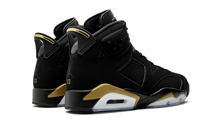 The Air Jordan 6 Retro DMP features a black suede upper with perforated inserts and gold detailing on the tongue Jumpman, ” 23 ” lettering, midsole and back strap. Finally, a tricolor outsole completed with an icy outsole finalize the design.