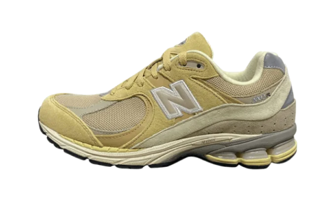The New Balance 2002R AURALEE Yellow Beige features a premium construction with a mesh base and suede and nubuck overlays. This new variation of the runner unveils a clever mix of colors in beige tones embellished with shades of yellow and hints of water green. As usual, this silhouette rests on an N-ERGY sole, ensuring optimal comfort.