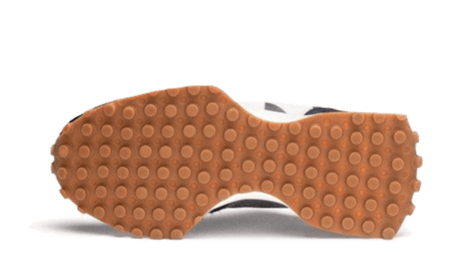 The New Balance 327 Castlerock has a grey fabric base with suede inserts. There is a navy blue reinforcement on the front of the foot, a medium blue one at the eyelets and heel and a touch of pink on the inner sides. White laces, the usual branding with the ” N ” on the lateral sides and a two-tone sole complete the look.