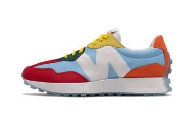 La New Balance 327 Cream Yellow Red affiche une base en mesh blanc cassé surmontée d’empiècements en daim beige sur les oeillets, la toebox et du daim jaune sur le talon. L’emblématique logo “N” qui accompagne ce modèle depuis toujours sur le panneau latéral se distingue dans une confection en imprimé rouge tandis que la semelle moulée en caoutchouc noir est également bien en place.